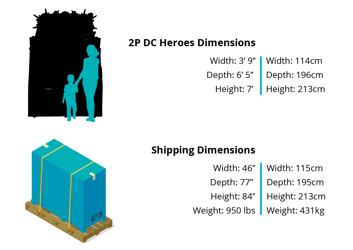 A brand new 2 player, closed loop, coin pusher with ticket payout and collectable trading cards featuring DC Comics Super Heroes and Villains characters.