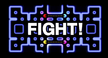 Pac-Man Battle Royale is the first four player competitive Pac-Man arcade game. The original Pac-Man game concept has been given a cannibalistic twist: Eliminate your opponents by eating them and the last Pac-Man standing wins the round. When players eat a power pellet, they power-up by doubling in size and increasing in speed. Once powered up, they are now able to eat non powered-up blue players and ghosts. Players of the same size simply bounce off each other. Players can also be eliminated by running into ghosts if there aren't any powered up players. Eating a piece of fruit or all of the pellets resets the maze with a fresh new set of power pellets. At the end of the game, statistics are displayed for each players such as "Won Most Rounds" and "Ate Most Pac-Man", etc. The game is simple, competitive, and highly addictive.