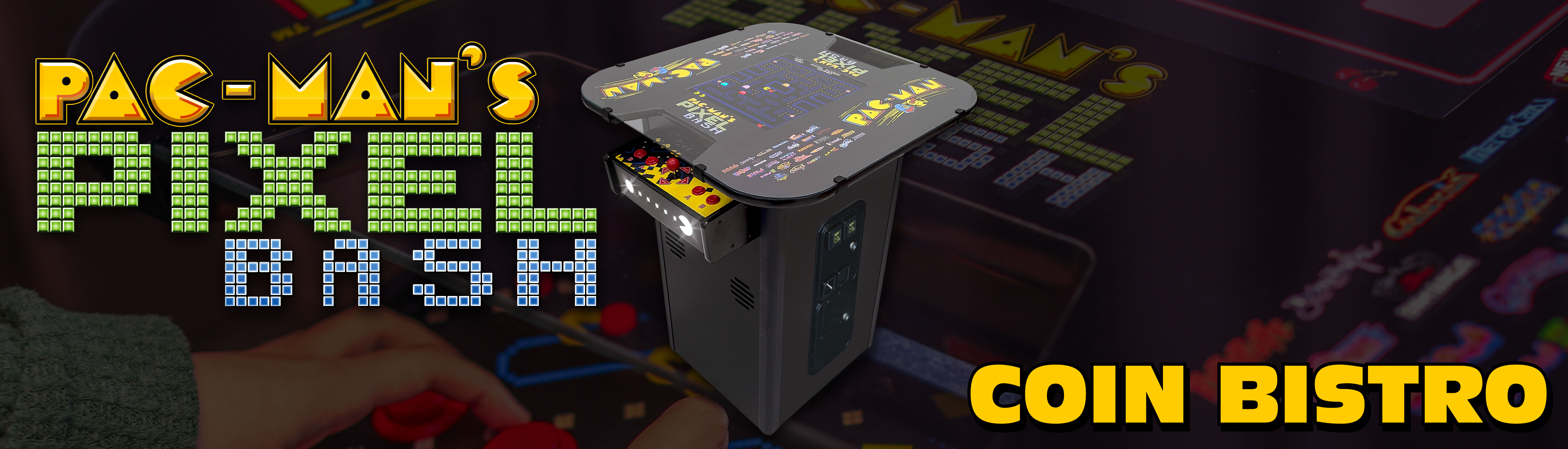 The next level of classic arcade fun for friends and family entertainment is here! Our brand new Pac-Man’s Pixel Bash Bistro Coin-Op is perfect for any home, entertainment center, or restaurant. With a new sleek design, durable tempered glass top covering a large a 27" monitor exclusive to the coin-op version, everyone is sure to enjoy it when they get their chance to play. The Pac-ManCave 30” Barstools are a great compliment to this Bistro!